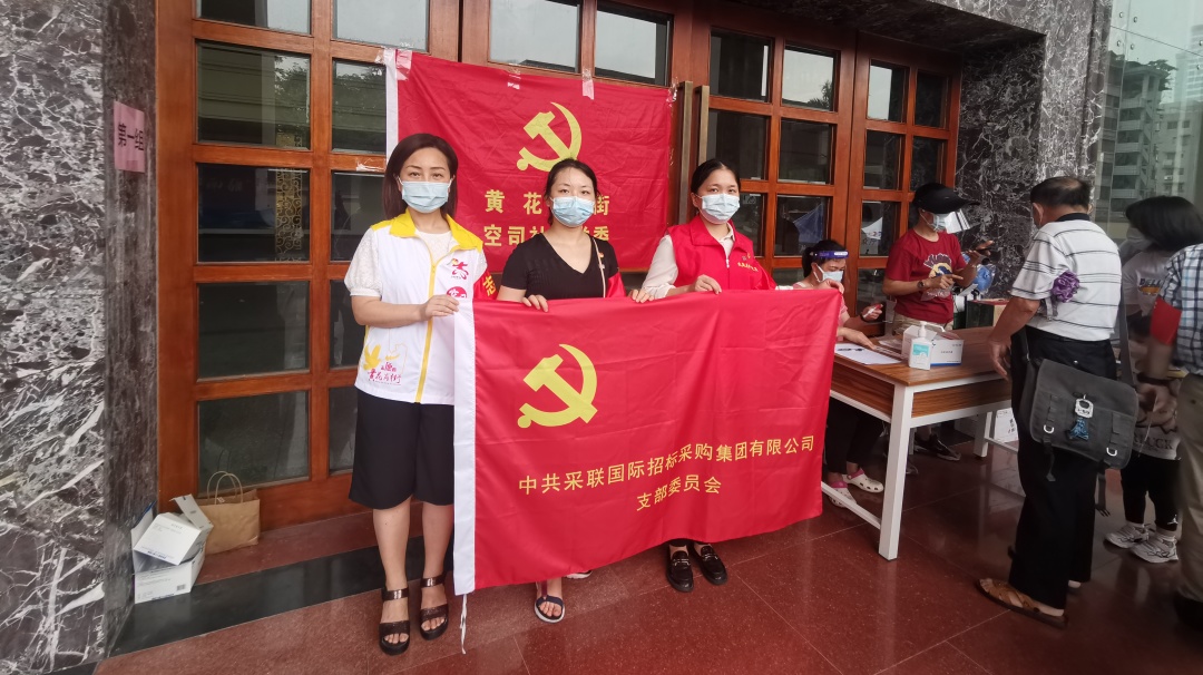 2021年6月25日,黃花崗社區(qū)黨委組織開展第四次大規(guī)模人員核酸檢測(cè),由于時(shí)間緊迫,需要大量的社區(qū)黨員志愿者前往協(xié)助。采聯(lián)集團(tuán)黨支部收到通知后,第一時(shí)間趕往現(xiàn)場(chǎng)支持工作。