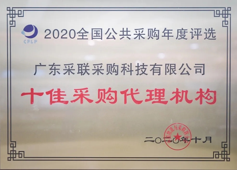 在年會(huì)上,中國(guó)物流與采購(gòu)聯(lián)合會(huì)隆重舉辦了“2020全國(guó)公共采購(gòu)年度評(píng)選頒獎(jiǎng)典禮”,揭曉了該評(píng)選活動(dòng)的六大獎(jiǎng)項(xiàng)獲獎(jiǎng)名單。阿里巴巴、京東集團(tuán)、順豐速運(yùn)、蘇寧易購(gòu)等榮獲“十佳公共采購(gòu)供應(yīng)商”,國(guó)家電網(wǎng)、招商局集團(tuán)、中國(guó)電信等榮獲“十佳集中采購(gòu)機(jī)構(gòu)”,廣東采聯(lián)采購(gòu)科技有限公司(以下簡(jiǎn)稱(chēng):采聯(lián)科技)等榮獲“2020全國(guó)公共采購(gòu)年度十佳采購(gòu)代理機(jī)構(gòu)”榮譽(yù)稱(chēng)號(hào)。